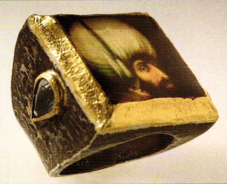 The jewelry by Sevan Bikakci, a talented designer who Kemal Simsek discovered in 2004 and recruited his jewelry collection for Acacia, speaks an entirely different language of forms. Sevan Bikakci's rings and brooches are playfully and elaborately fashioned, unique pieces, inspired just as much by personal dreams as by the designer's direct environment. The Old Town of Istanbul in which the Grand Bazaar, Topkapi Palace, Hagia Sophia Church and much more is a constant source of inspiration for the former modeler, who has enhanced Acacia Design for only two years now. In order to create his jewelry, Sevan Bikakci frequently cooperates with artists from other disciplines. The miniature painter Hasan Kale, for example, provides portraits of Ottoman Sultans and tiny reproductions of icons from the Hagia Sophia and the Chora Churches for the magnificent, unique items. A particularly remarkable fact is that the 35-year old Sevan Bikakci can unite Byzantine, Ottoman, Armenian and other local influences in one single ring, without the rings appearing folkloristic or kitsch. Despite all of its historical, geographic and mythological influences, his jewelry is as cutting-edge modern as that by his very different partner. Their jewelry could not be more dissimilar: Reserved, well considered and calculated forms on the one hand, playful adornment in connection with Old Turkish crafts on the other. They present themselves together in the symbol of the acacia.