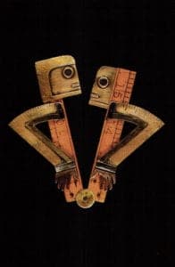 During a trip to Japan in 1983, Kiff studied the aesthetic and poetic possibilities of layering which permeate so many aspects of Japanese life, from temple architecture to kimono design. She was especially intrigued by the unlikely sense of depth this process lent to foreshortened Shinto shrines a discovery with abundant potential for a jeweler. Kiff made a number of brooches exploring the architectural and spiritual essence of temples, and tall, eloquent Torii archways which the Japanese built on both land and sea, as monuments, portals, and frames for sacred spaces.