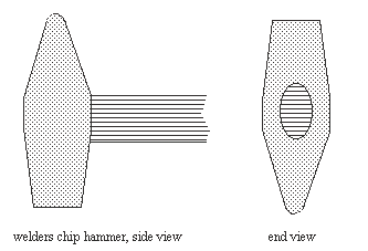 For forging and fold-forming work a old-fashioned welders chip hammer which has two driving peens at right angles to each other is very useful. Sometimes one can find flea market versions or inexpensive Chinese versions which work well. One rounds off the ends of each peen to make them useful.