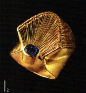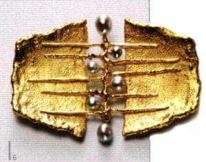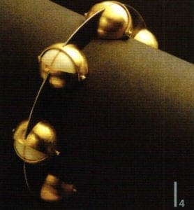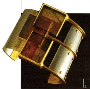 "Whoever leaves the beaten path and, like you, is open to discoveries, will soon find new opportunities in the direction one has taken," was how Schollmayer once honored the work Ullrich completed. After treating the surfaces with a new form of processing, which the artist simply called 'welding', he soon produced work with applied parallel lamellas in gold. Although their structure shows the closeness to welding, there was another, also new effect: exciting due to the reflection of light. Between the closely applied lamellas, the gold receives a fascinating enhancement, or better, deepening of its own color. Thanks to the use of high quality gold, the pieces become similar to the old gold work by previous cultures, without being stylistically related to them. Another stage of development is the addition of hard metals to the warm glow of the gold. A strong contrast, in which above all palladium and also steel are used. This is where Ullrich's virtuosity is revealed, as he puts together the inherent values of the softer and harder metals to form an exciting play on form with contrasting surfaces. Ullrich's openness toward his artistic environment, coupled with his knowledge of materials and their behavior, are the basis for the style and high standards of the work by the artist "The informal and the tachism in the non-objective art of the fifties, the controlled coincidence in the production of a picture and the controlled and free breaking of a stone when creating a sculpture with other crafts and technical means by Ullrich brought their introduction to jewelry design," judged Fritz Falk, for many years Director of the Pforzheim jewelry Museum, concerning the work characterized by artistic influences from other areas, placing the focus on the human being. Or as Ullrich put it himself. "My jewelry is intended to be a synthesis of contemporary design and wearability; it needs to be understood by the woman wearing it, as it could otherwise provoke her."