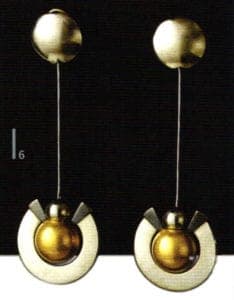 Earrings, 1987, fine gold, gold, palladium, stainless steel, silver