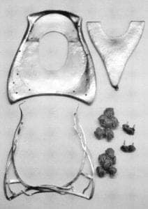 Each element of the center plaque design was carried out in a different process. The lower field of iris was under glazed, engraved, and inlaid in transparent colors. Gold foil elements were inlaid for the blossoms, then inlaid with transparent violet and white opal to be painted later.