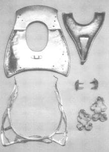 The enamel plaque was lightly domed copper with holes for assembly. The copper parts of the frame were shaped in pitch and hammered. The top part was made to fit the finished enameled plaque exactly. The back support was constructed and ail the hinge parts were fitted and soldered on. Gold elements of 18k gold leaves, buds and stalks were constructed to create a basket to hold the enamel in place. When the copper frame and gold work were finished, the enamel plaque was fitted in place and the 'Iris' elements were carved in wax to fit precisely over all the layers. The elements were cast in 18k gold. After cleaning the casting, 18k gold handmade screws were soldered to the flower elements. These were enameled with opal enamel that had been matched by the painted ones on the plaque. The enamel was etched to a soft matte finish to allow the gold texture to show through, and allow the rich 'fire' of the opalescence to come through without glare. The gold irises serve as the heads of screws that hold all the layers of the piece together. They are fastened at the back with handmade nuts.
