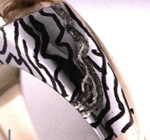 For this technique the alloys with the colors which make the biggest contrast have to be chosen (Fig. 5). If the piece of jewelry is done for a customer he or she can be asked to choose the colors. If a customer chooses he or she can be allowed to use a fine tip marker and color the veins in the wanted color. This will eliminate any error or misunderstanding. Then the filling of the veins with the different color laser wire starts.