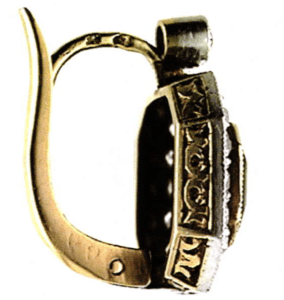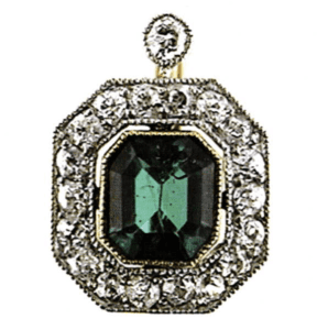 | Top view picture of damaged antique two toned emerald and diamond bracelet. |