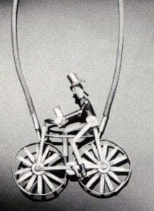 Wild Appaloosa (1983) was inspired by the original eight-foot-long antique Sioux Indian "Horse Effigy" at the Tate Gallery, which she wanted to show in a new way in her jewelry. Worn correctly on the diagonal, the horse is a memento of the warring, moving spirit of the American Plains Indians, and probably of Hall's own restless energy.