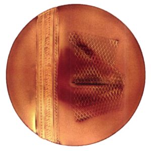 The copper foil that is easiest to texture is 1 mil (.02540 mm) in thickness. I have experimented with 1.4 mil foil which also works well. The thicker copper is easier to handle; the thinner copper is easier to tool or emboss, and the resulting texture is more pronounced. Some pieces have copper screen which can give interesting textures and effects.