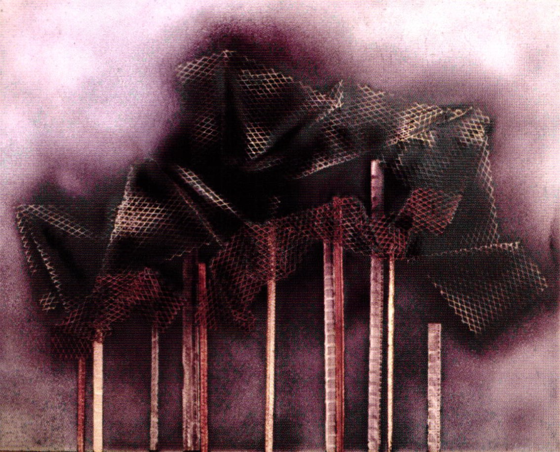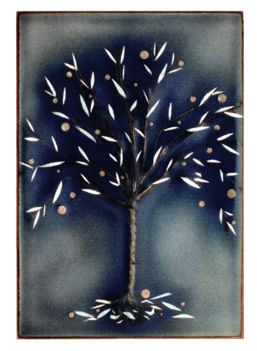 I have adhered the metal onto a pre-fired enamel surface, sifting more enamel over the wrinkled copper and fired it. I have even gone back to a piece made that way and added embossed metal shapes which are then enameled. The electrical wire is very effective in making trees because the wire is already twisted which can make the trunk of the tree while the branches and roots can be made by pulling the wire apart and untwisting it into the desired shape.