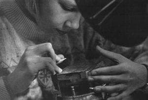 The curriculum is as comprehensive as one can imagine. If it has anything to do with gold-silver, smithing it is taught—from metallurgy through computer-design to gemology. The facility has specific studios designated for different activities, 16 separate class-rooms plus display areas. During the planning phase a new work-table with only one leg was designed. The two belly-hole table has a leg in the middle from the floor to ceiling containing a 5″ pipe through which all services and ventilation are accessed, providing both safety and ease of house-keeping. Many other innovations in the state-of-the-art school may be found. The ergonomics of the spaces offer a vast improvement over the numerous cobbled together studios of other institutions, ranging from the color off floor tiles, to lights, traffic, acoustics, disappearing walls, accessible audiovisual aids, down to the height of individual worktables and stools, etceteras. Gone are the dark dungeons of yesteryears where the worktable faced a corner or a wall. Now the worker faces the longest view of the studio, in good light and almost invisible white walls.
