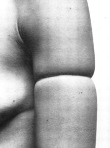 Bakker's jewelry of the '70s and '80s seems to evade issues of craftsmanship entirely. He has concentrated on photographic images laminated to make wearables of various forms. In the mid-'70s he made linen bibs (tied onto the neck, like baby bibs) printed with a photograph of the wearer's bare chest - male or female. There is an amusing yet almost disorienting doubleness in seeing the clothed person adorned with his or her nakedness, as if one suddenly had x-ray eyes.