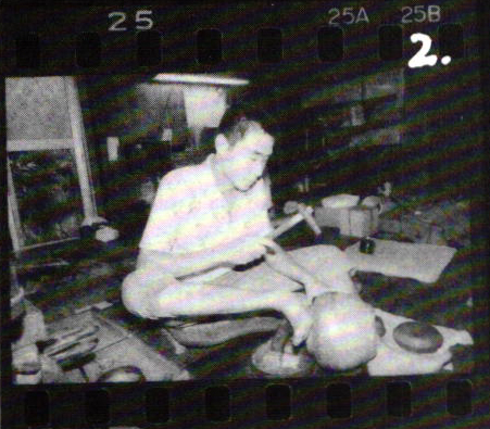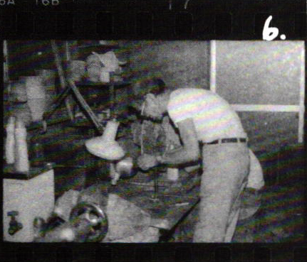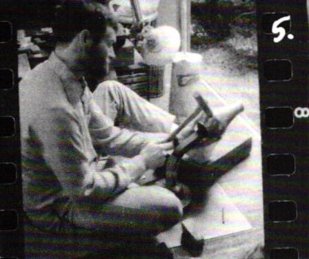 When I entered, the apprentices looked up and nodded to me without halting their work. Mr. Tanaka was not present. I had been coming to this shop for almost two weeks and I knew what to do. I changed from my street pants into some sweats and from shoes into thongs. Then, as I stepped out of the thongs and up onto the platform, where most of the hammering was done, I picked up the strip of metal I had been working on when I left the day before. It was a piece of copper about two inches wide and 12 inches long. It had originally been shorter and quite thick. It was only one of several that I was reducing in dimension. I took the forged strip and proceeded to the shelf of stakes where I picked out a flat-topped anvil, a planishing hammer and a mallet.
