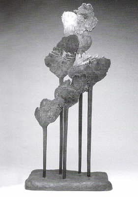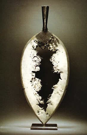 Sauder's oeuvre embraces more than sculpture; indeed, the artist simultaneously creates three generations of objects. Sauder first makes the bloom, seeking qualities of shape, surface, and texture that will be refined by skill. His sculptures are the second generation of the aesthetic experience, made by using techniques and tools appropriate to contemporary metalsmithing. Going a step further than most artists, Sauder is then able to create a third generation of the same piece, by transforming its three-dimensional quality into a twodimensional "print." Thus invested in the work, Lee Sauder makes the most of the aesthetic experience. While that may mean that he has put an inordinate amount of time into his art, the results speak for themselves in the quality and refinement of the finished pieces.