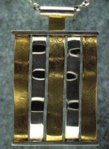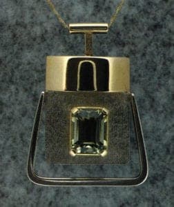 It was 9:00 in the morning in Lawrence, Kansas and Carlye Smith was heading for his jewelry studio, as he has done nearly every day since he retired from teaching at the University of Kansas in 1977. It was a pleasure to recently visit him there and to view his new work. The new pieces of jewelry are mostly commissions and these elegant objects are as steady and as directed to design and craftsmanship as is all of his previous work that I remember. I see in this accomplished artist's jewelry an interwoven mixture of his life as a jeweler/silversmith, dedicated teacher, friend and supporter, and devotee to the field of metalsmithing.