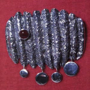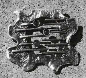 In combination with a compliment to a successful teaching career, there have been important commissions, these include: a chalice for the Trinity Episcopal Church in Lawrence, Kansas; an Abbots ring and pectoral cross for St. Benedicts Abbey, Atchison, Kansas; and the Chancellor's collar and mace for the University of Kansas. In addition, the Renwick Gallery has purchased a brooch that was made in 1957, and the Boston Museum of Fine Arts has recently acquired several pieces of his jewelry and hollowware.