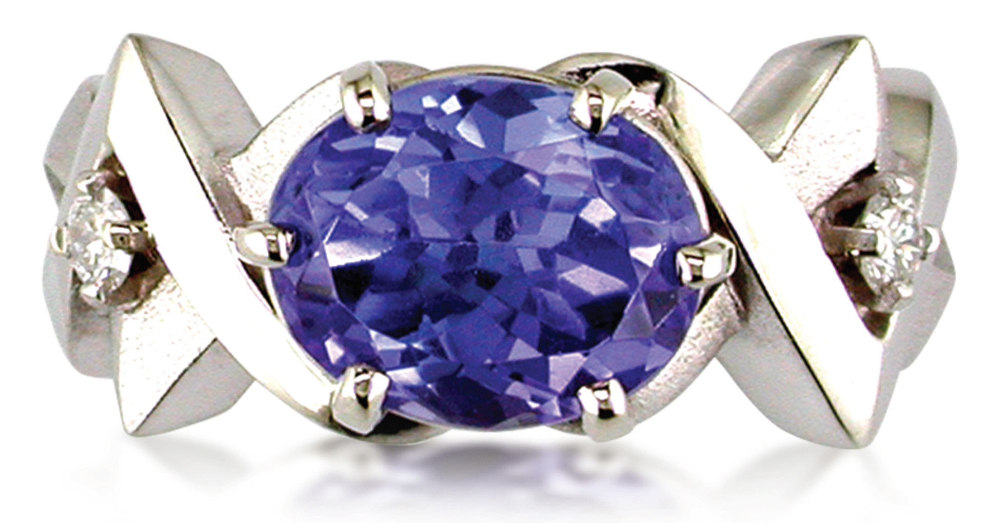 Aalund says that the biggest challenge was setting the brittle tanzanite—the last step. They trusted the challenging process to Fried, who managed the task expertly, setting the stone in a basket-head mounting, an open style that's perfect for attracting more light.