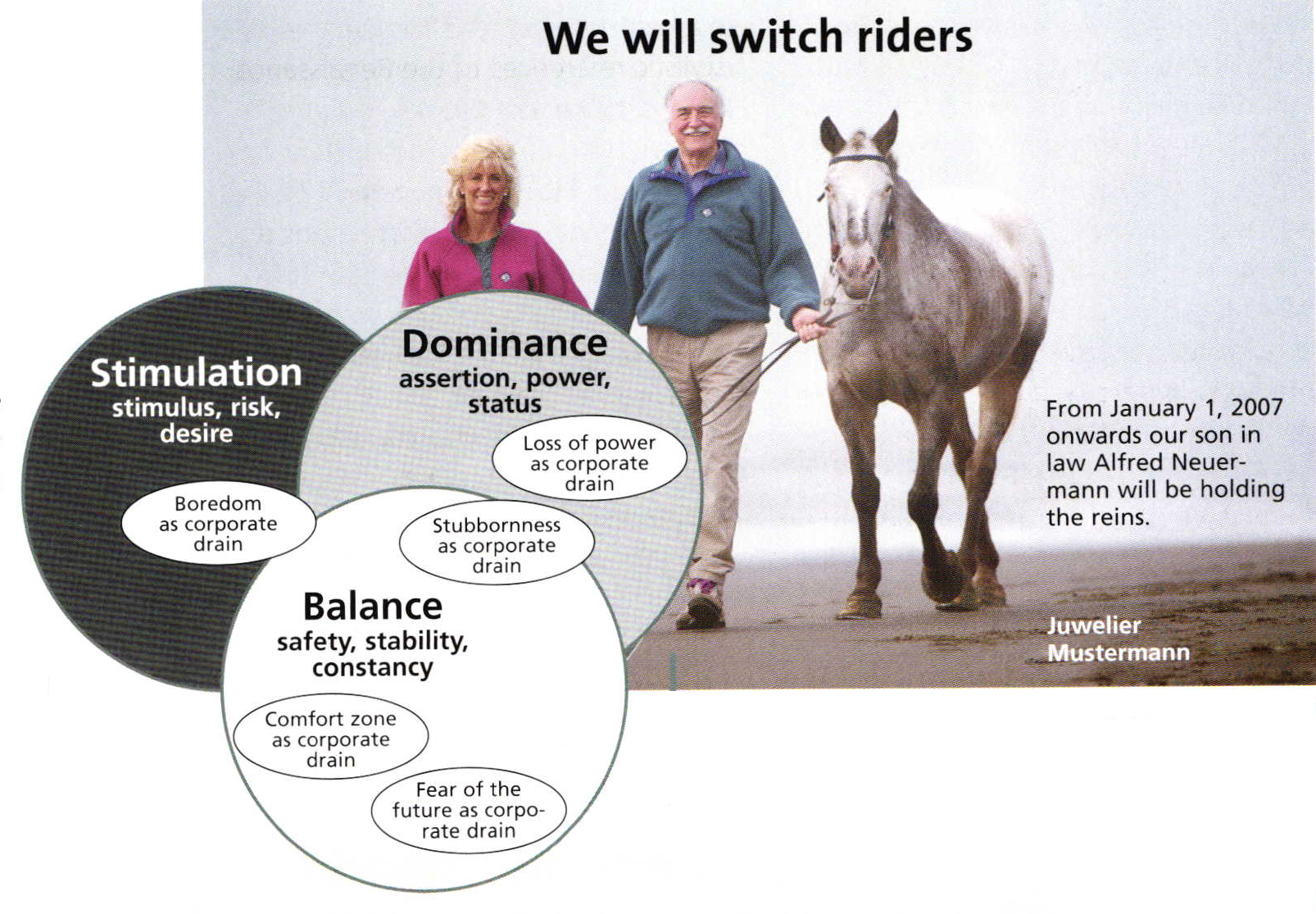 "In the last 50 years I have turned this business into what it is today and I am nowhere near handing over the reins". From our experience of history, politics and economics, it is common knowledge that large, powerful companies collapse in the hands of private entrepreneurs. Is success really blinding? Yes. Successful business people are bursting with confidence and optimism due to a significant rise in the levels of testosterone in their bloodstream. This high concentration is sustained for an extended period and the body is rewarded with an outpour of happy hormones. This will explain how top athletes can embark on winning streaks around the globe, travelling tirelessly from one victory to the next. Evolution has rewarded winners a further happy hormone known as serotonin, high levels of which give rise to calm and contentment as well as restructuring thought patterns In fact, serotonin can actively induce laziness, allow warning signals to be ignored and inhibit the identification of threats. Long-standing winners review the world from a position of complacency: "Nothing can touch me". All too often, losing such a grip on reality can have disastrous effects for companies which are normally run too tightly. The question remains as to why patriarchs are not stopped in their tracks by colleagues or junior managers. Given that typical winner-personalities are very often charismatic leaders, there should be room for cooperation/mutual respect on both sides.