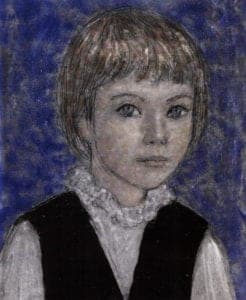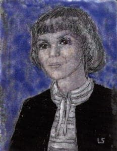 Note: In 1951, "Enameling Principles & Practice" by Kenneth Bates was published. On page 186 was an enameled portrait by Lisel Salzer. To me, it seemed the ultimate in enameling. In 1982, I was delighted to meet her at an enamel symposium in Seattle. There, I was able to watch her paint an enamel portrait of a live model.. Actually, the live model was Irmgard, my wife. She started with a copper panel which had a coat of fired black enamel, and a dry bisque coat of liquid 831. It required about one hour and thirty minutes, including three firings. The August 1986 issue of Glass on Metal was a special edition about Lisel and her enamels. We exchanged cards at Christmas time for 23 years. The hand made card for this year arrived fourteen days after her death.
