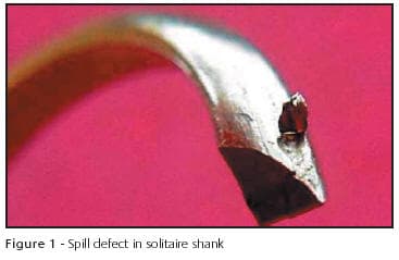 The case studies have been divided into two major family groups - those that are "materials" related and those that are "process and operator" related. Although the examples cited are from a die striking environment, they will apply to all areas of jewelry manufacture. There are numerous investment cast findings available and defect analysis of these is, in itself, a complete subject; much on this has been published on numerous previous occasions and so it will not be included in this article.