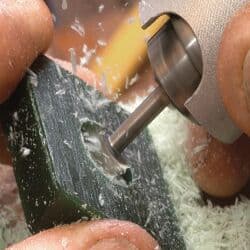 - Use a flex-shaft and bur to start a hole through the wax that is the size of the ring being created. I then slightly heat a steel mandrel that I've dedicated to this purpose and use it to enlarge the hole to the correct finger size.