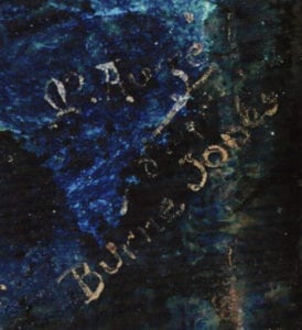 The fine and fascinating enamel plaque shown here [Pic. 1] is a copy in enamels after a painting by the famed pre-Raphaelite artist, Sir Edward Burne-Jones, titled 'Love Among the Ruins'. The original, very large painting was much admired and was included in several publications in its own time and ever since. The very much smaller enamel copy is now in the possession of Onn Tammuz, who purchased the plaque by auction, in 2004, when the only information was that it had come from a private collection in the US. The enamel picture is signed and the painter added 'd'apr6s Burne Jones'. The signature, in liquid gold fused into the glaze, [see detail, Pic. 3], is slightly indistinct: the initial seems to be the capital letter M or N, while it could be a cursive P. The third letter in the surname may be read as - Augé, Auzé or Aujé. The balance is towards Aug 6, which is the surname of a family of artists of Limoges [France], known to be active in the 19th century, and included two members with the initials M and N. As far as is known at present, they were not associated with enamel paintings. Philippe Augé, born in 1935, also became an established painter, and a known picture by him [not enamel] depicts stylized, elegantly dressed young women, with a crisply coloured décor following the Art Deco style. At best, any similarities to the enamel plaque of 'Love Among the Ruins', are tenuous. However, Phillipe Augé may have included enamel painting in his output, and such an attribution means the piece would have been made no earlier than the 1950s. Enamel painting was re-established in Limoges in that decade, but tending to modernistic rather than revival styles. With regard to this enamel picture, my feeling is that there is a strong influence of the Art Enamelers of the late 19th and early 20th century in this piece, and, lacking additional clues, I would concur with dating to that period.