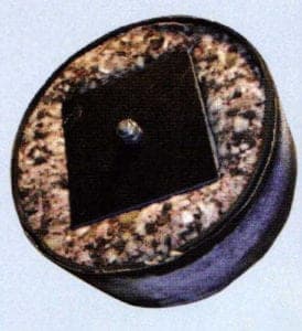 Two different rubber disks are on the market. One is a rubber disk with a bolt which is coupled with the drill chuck. The abrasive disk is glued with a special glue to the rubber disks (Fig. 14 top and bottom right). Disks which are glued on the rubber disk can easily be removed and glued on again. This glue is available through a lapidary supplier. Also available are abrasive disks with a pressure sensitive adhesive backing.