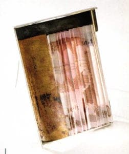 Brooch 'Paper' by Bettina Menrad-Maier. Silver, copper, 10 Euro bill