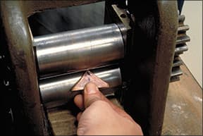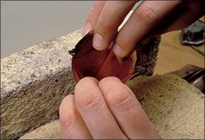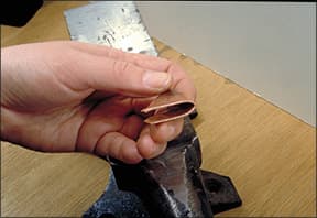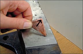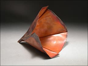 One of my favorite folds is called a Heistad cup. It uses one of the most important principles of fold-forming: Multiple layers worked simultaneously work evenly. Able to be constructed by hand in only three minutes, the cup is a source of mystery to many goldsmiths. They tend to study it for a long time, searching and searching for the nonexistent seam. I have used this technique to make earrings and small bells. Here are the steps: