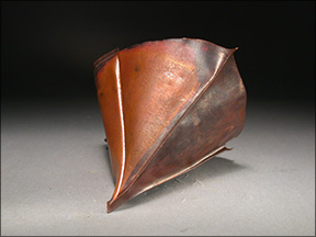 Fold-forming is a hand-working technique applied to single sheets of metal to create surfaces and three-dimensional forms quickly without soldering. It relies on the metal's plasticity and ductility to make hundreds of complex forms resembling chased, constructed, and soldered shapes. Using thin materials, you can create light, volumetric objects and surfaces. Radical changes in cross-section are possible in only three to five minutes using simple tools such as a hammer, mallet, anvil, vise, rolling mill, and your fingers.