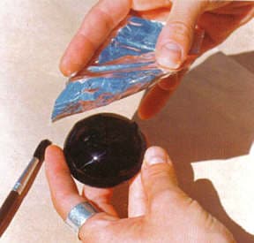 This technique consists of the successive application of silver foil sheets, changing the colors of enamels among them, and then to wear away sectors, and discover each one of the colors used in the different layers. Apply the first of the layers of enamel. In this case we have used black enamel. It is very important to enamel the back face.