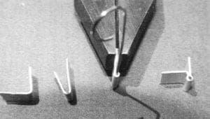 Make the hook from an about 2-3 mm broad silver strip. (see pic 10, left). For the needle mount make a silver strip from an 0,7 mm thick sheet, broad about 5 mm and length about 30 mm. So that the needle mount looks good, the long sides of the strips get rounded off.