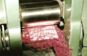 The needle must stand on tension. Hold the loop with the thumb and bend the needle somewhat in your direction. So that the needle hangs also upward firmly in the loop, the needle is also bend upward now.