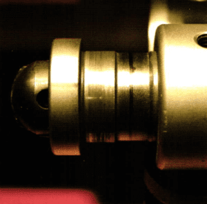 Spin the ring holder until the button gauge is parallel with the arm. Use the collar mark and mark the 3 o'clock position. Turn it 180 degrees and mark the 9 o'clock position. Notch the marks with a separating disc. Paint all the notches on both pieces using a toothpick with a bright color spot.