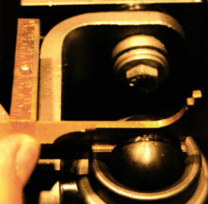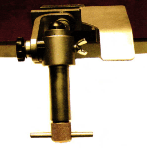 Place a sliding button gauge in the jaws to use as a reference, and then spin the ring clamp until the button gauge is perpendicular to the arm.