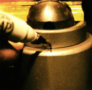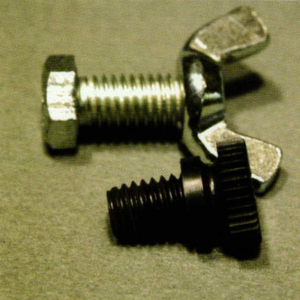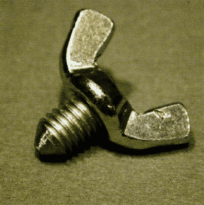 Now you need a 3/8 in. X 11/2 in. course thread bolt and a matching wing nut. Screw the wing nut on to the end of the bolt and laser weld it into place. You can also use lead solder here to solder it. The capillary action of the lead solder will be more than strong enough. Cut the bolt off so the threads are 1/8 in. longer than the old plastic one.