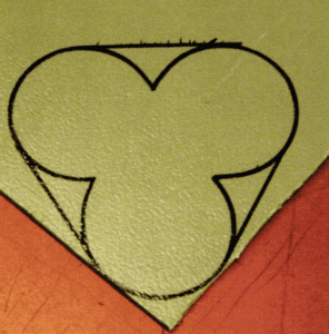 Cut three pieces of PVC pipe either 11/2″ or 2″ diameter into 11 inch long or 5″ long pieces. Rubber band them together and use as a template to draw on the flat PVC sheet. (Use good ventilation on all cementing steps and no source combustion)