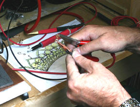 Howard sent the old gold out for refining and received over 4 ounces of fine gold in return. He alloyed the gold to 14-karat yellow, poured ingots and rolled wire for the crown. The crown has over 600 contact joints so Howard decided to use tack- and pulse-arc-welding technology. Here's an overview of the procedures he used: