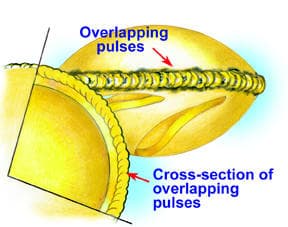 An overlapping pulse technique was used to obtain a thick, even full joint with no gaps, spaces or irregularities.