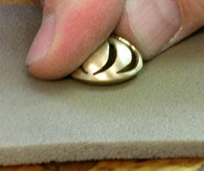 Using the Tack II, the bezel was tacked onto the domed pendant. The unit was set on the high-energy setting and 40 volts. Because the bezel was tacked, it did not shift or move during soldering and required no special holding devices.
