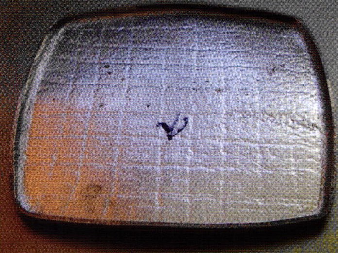 Remove the silver sheet from the plastic. File away the little folds, other roughness and the top of the rim as needed. If you are going to enamel directly on the silver frame, file down the rim to a height of about 0.8 to 0.9 mm.