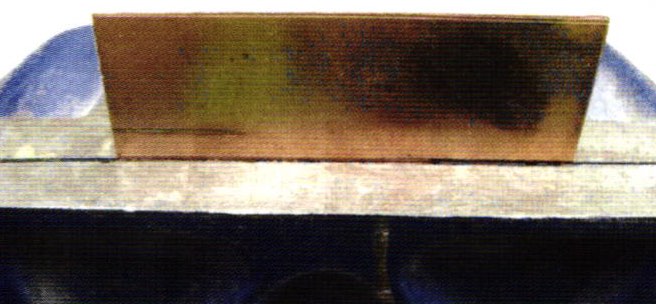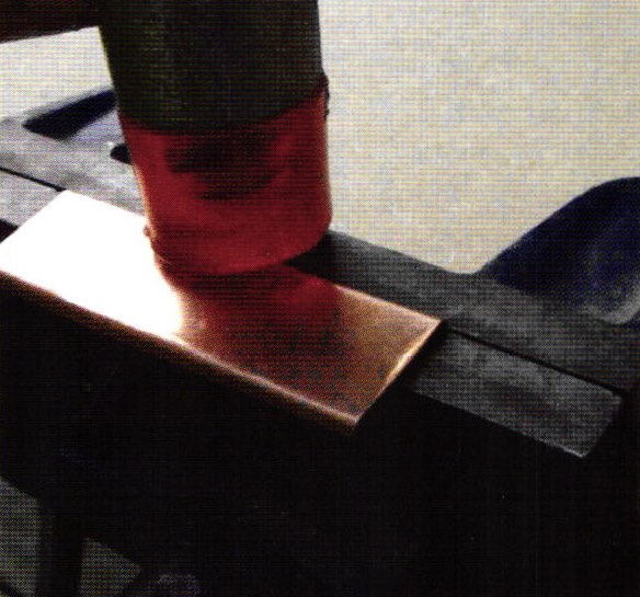 Clamp the silver sheet in a bench vice so that the line of the silver sheet is close to the top line of the vice shoe. Bend the sheet over to a right angle. Use a mallet or soft hammer (Fig. 15).