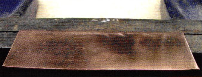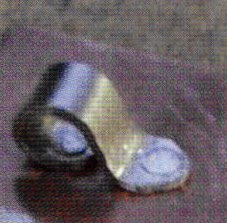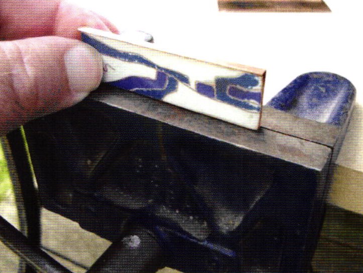 If you don't have one you can make one from a piece of band hoop or you can use the bit of a chisel. After bending, check out whether you can insert the enamel piece from one end of the metal frame. The enamel should slip in easy. If not, grind away a little part of one side of the enamel piece. Make sure the bent parts of the frame are only 0.5 mm higher than the enamel surface (Fig. 19).