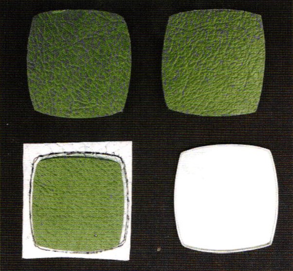 Transfer the outline of one of the plastic shapes to a 0.7 - 0.8 mm fine silver sheet. Enlarge the size of the shape by adding an extra 2 - 3 mm to the outline or perimeter of the shape as this will become the bent over "frame" of the shape. (Fig. 2). If you want to enamel directly on the frame, you need only a rim height of about 1 mm. However, you will still need at a minimum 2 mm excess or you will not be able to bend it over. All types of shapes are possible with this technique, not only round or square (Fig. 3).