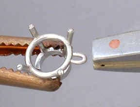 The upper gallery wire was formed from round wire. The position of each prong was notched in it so the wire would drop into place at the correct height. It was then soldered at each prong junction with 1500 solder.