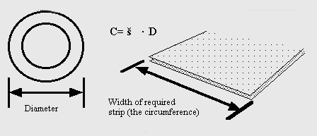 Let us assume then that I wanted a wall thickness of one millimeter on a tube with an outside diameter of 3 mm. I would first determine the circumference of a 3 mm diameter tube. C (circumference) =P x D (diameter) so we would multiply 3.14 times 3 to obtain 9.42 mm (P=pi=3.14 more or less). This represents the minimum width of the blank required to make the tube. The sheet used would be 1 mm thick.