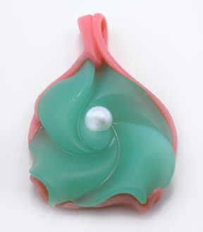 The pendant is completely built-up, shaped and smoothed using wax solvent. It is shown here with the cultured pearl nested where it will be set after casting and finishing.