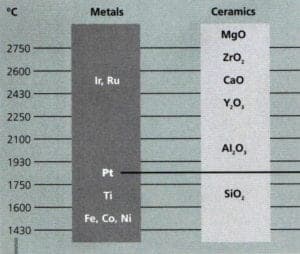 - Regarding on high melting point and resistance to attack, Pt is famous for the measurement of high temperatures.