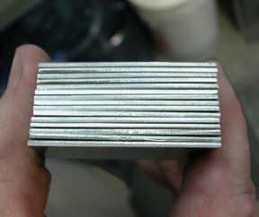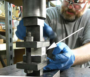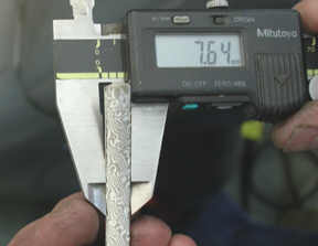 The billet began measuring 8.25 millimeters in width and needs to be 6.5 millimeters when completed. Final shaping and forming will be done with custom made dies and a rolling mill.
