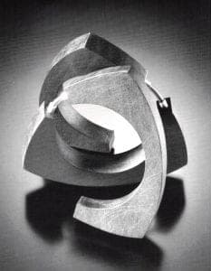 It proved a fortuitous choice, particularly since Bruno was given a job as a shop technician in the Industrial Design department. At the University of Washington, though the metals instructors Mary Lee Hu and John Marshall, are metalsmiths in a very pure sense of the term, Bruno felt supported in her explorations of nontraditional materials. "I'm sure that John and Mary took one look at my plastic work and thought, 'Oh my God, what are we going to do with her?'", Bruno says. Still, it was at the urging of her graduate committee, which included Hu, Marshall, and faculty from the Industrial Design department, that Bruno began to try to pare her designs down to their essential elements. "They encouraged me to take one section of the piece and focus on it. It has taken me all this time to get all the extra elements out, to pull back enough to be able to use elements that are a blown-up version of what used to be many individual connections."