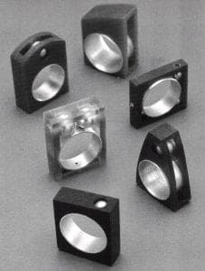 Marcia Bruno is as straightforward and unpretentious as her work, and like her work she has had to go through a process of paring down to get that way. She made her choice of career in typical undergraduate fashion - she knew she wanted to be an artist, but the sculpture class was full so she signed up for jewelry. From such a humble and unpromising beginning came a great passion for and dedication to the processes of jewelry-making. Bruno ended up graduating from the metals program at the Tyler School of Art in 1988. Stumbling into metal at Tyler had been an unexpected whim of fate, one of the gifts that the Muse doles out so grudgingly. At Tyler she found support for her love of industrial processes and materials. "At Tyler they showed us every jewelry process known to man", says Bruno. "There was a section on machine tool processes, electroforming, coloring of metals. Everything but enameling." Bruno dove into the technology; some of her undergraduate work looks as if she were trying to do all the new processes on the same piece. She was fascinated with new materials and with color. She started to experiment with anodizing aluminum and then began to combine bits of plastic with the aluminum, until finally a graduate student showed her how to laminate plastics. From then on she and metals parted ways. "I just went nuts for the technique", says Bruno, "I started using a little more plastic, a little less aluminum, until I found that for me the aluminum techniques held less interest than the possibilities of plastics."