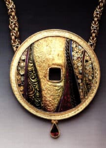 Harlan Butt, whom Marilyn considered an exceptional enamelist, regarded her the same. "In a 1998 review in American Craft I chose seven 'treasures' from an exhibition of 127 objects which I felt exemplified the finest work being done in contemporary enameling. One of those pieces was Marilyn's Byzantium, an enameled pendant with chain… Since that time I was privileged to see a number of other works by Marilyn, including her pieces in the first International Indian Enamel Exhibition (New Delhi, 1999). The care and skill, the attention to detail and sensitivity to color, form and pattern, could only be described as exquisite. It was a thrill comparable to the handling of a Faberge or a Lalique," (web site.)
